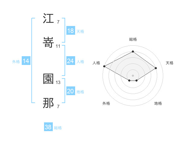 江嵜 園那さんを姓名の画数から五運を鑑定