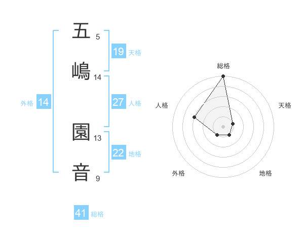 五嶋 園音さんの総格は41画の5点!