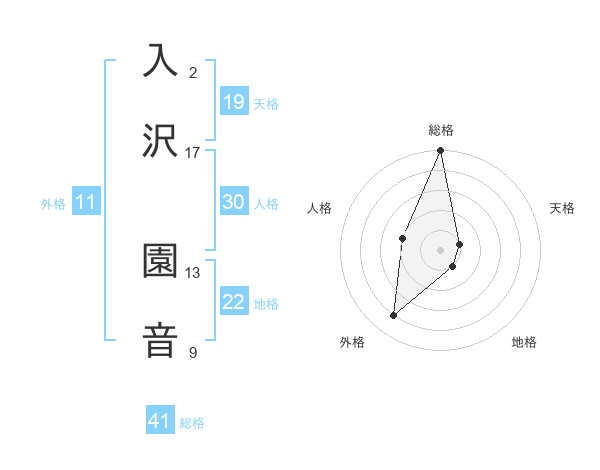 入沢 園音さんの総格は41画の5点