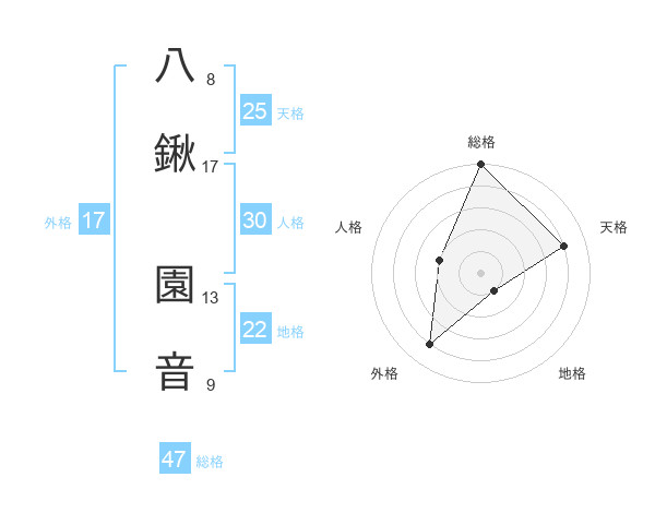 八鍬 園音さんの外格は17画の4点!