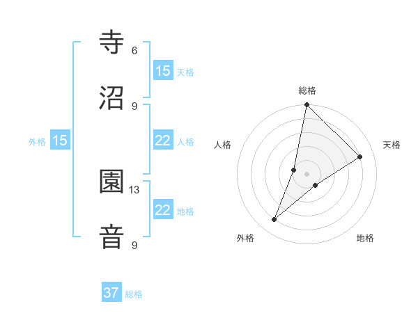寺沼 園音さんの地格は22画の1点!