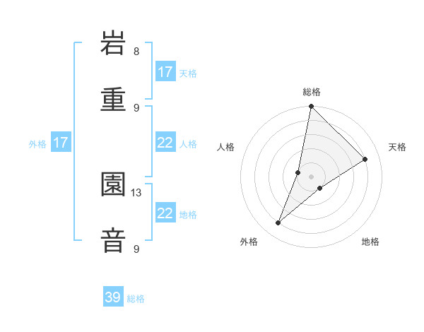 岩重 園音さんの天格は17画の4点!