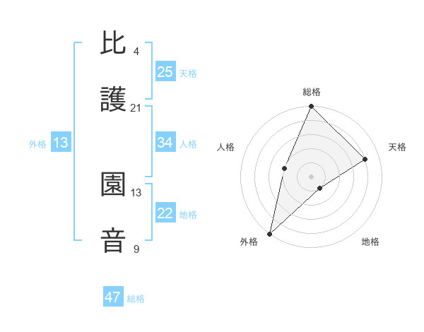 比護 園音さんの総格は47画の5点!