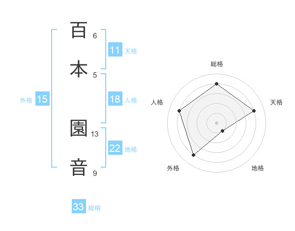 百本 園音さんの総格は33画の4点!