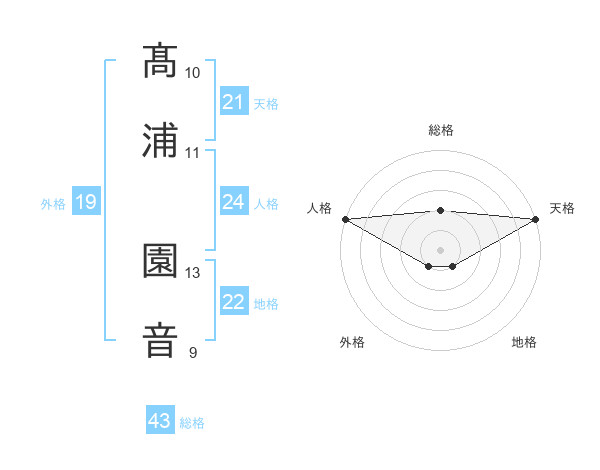 髙浦 園音さんを姓名の画数から五運を鑑定