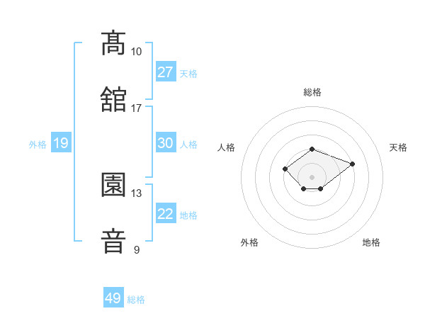 髙舘 園音さんの総格は49画の2点!