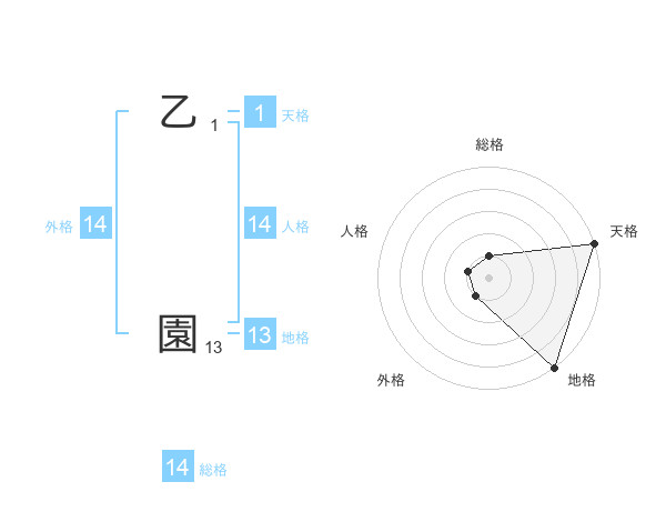 乙 園さんの総格は14画の1点!