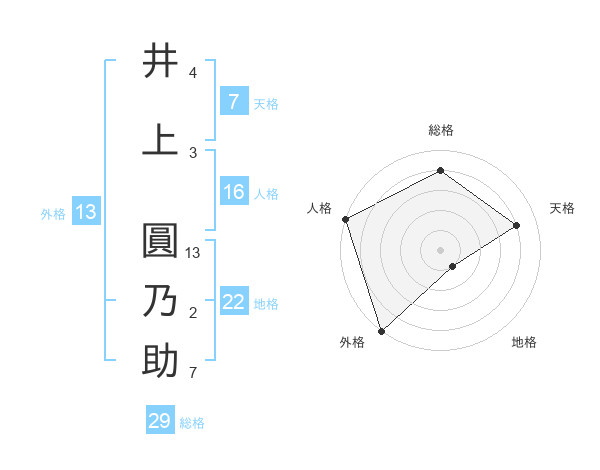 井上 圓乃助さんを姓名の画数から五運を鑑定
