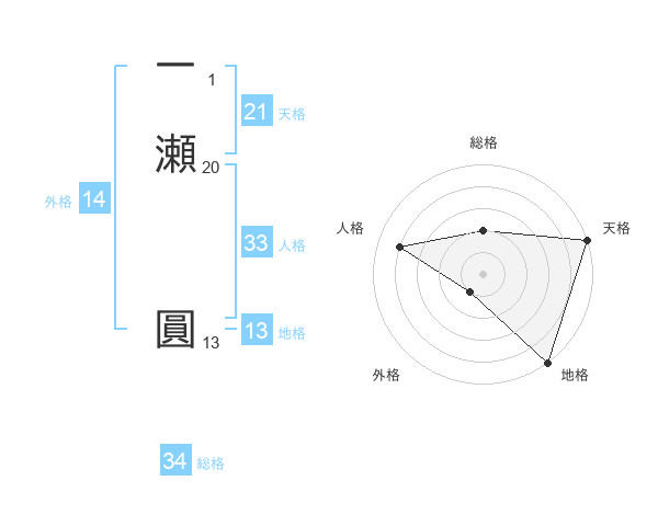 一瀬 圓さんの天格は21画の5点!