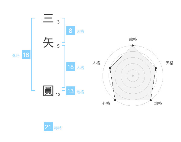 三矢 圓さんの外格は16画の5点!