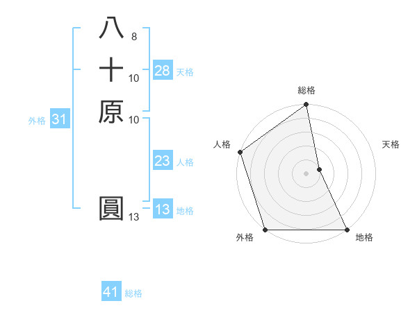 八十原 圓さんの外格は31画の5点!