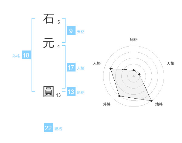 石元 圓さんの総格は22画の1点!