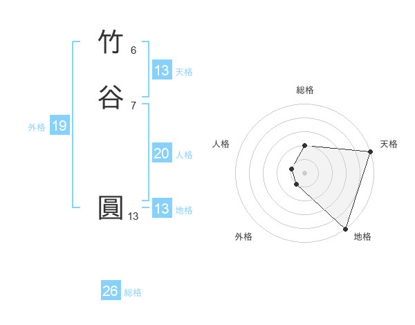 竹谷 圓さんの天格は13画の5点!