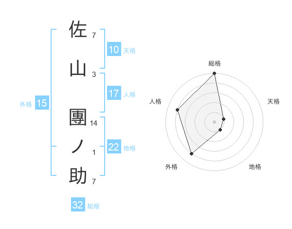 佐山 團ノ助さんを姓名の画数から五運を鑑定