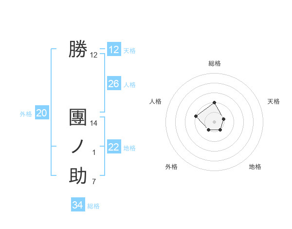 勝 團ノ助さんを姓名の画数から五運を鑑定