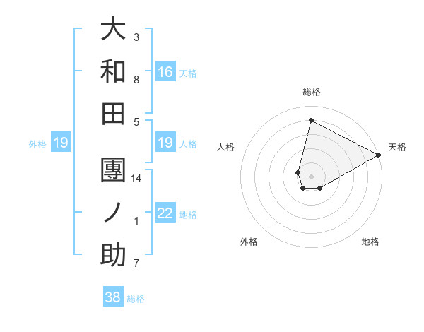 大和田 團ノ助さんを姓名の画数から五運を鑑定