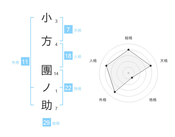 小方 團ノ助さんの総格は29画の4点