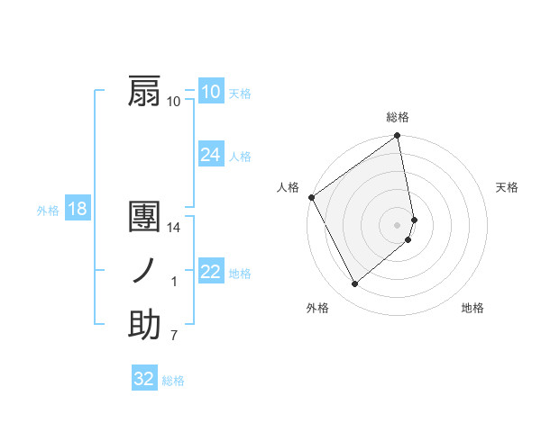 扇 團ノ助さんを姓名の画数から五運を鑑定