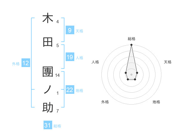 木田 團ノ助さんを姓名の画数から五運を鑑定