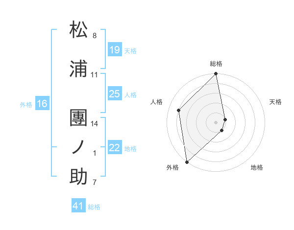 松浦 團ノ助さんを姓名の画数から五運を鑑定