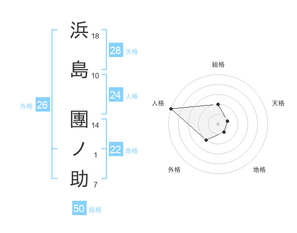 浜島 團ノ助さんを姓名の画数から五運を鑑定