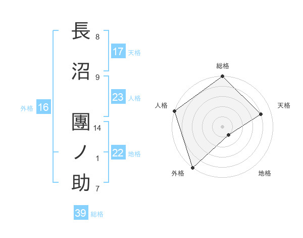 長沼 團ノ助さんを姓名の画数から五運を鑑定