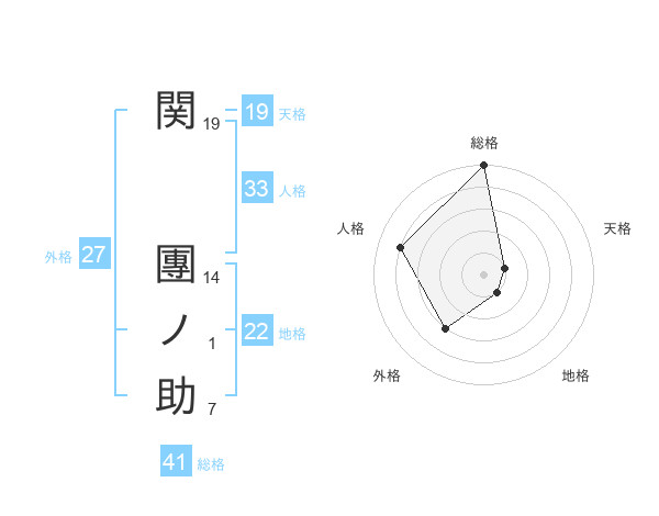 関 團ノ助さんを姓名の画数から五運を鑑定