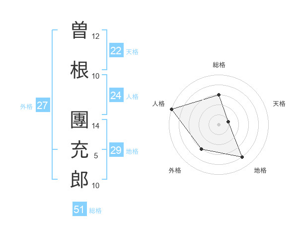 曽根 團充郎さんを姓名の画数から五運を鑑定