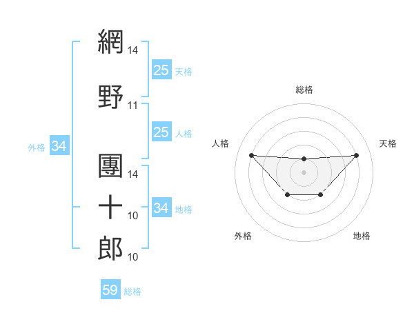 網野 團十郎さんを姓名の画数から五運を鑑定