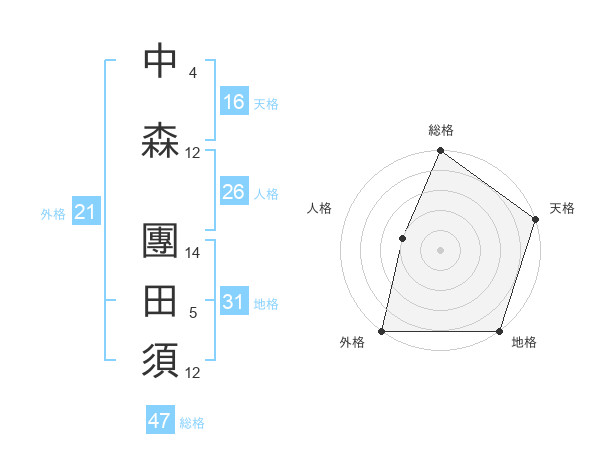 中森 團田須さんの地格は31画の5点!