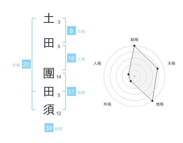 土田 團田須さんの総格は39画の5点!
