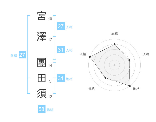 宮澤 團田須さんの総格は58画の4点!