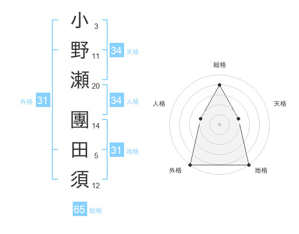 小野瀬 團田須さんの総格は65画の4点!