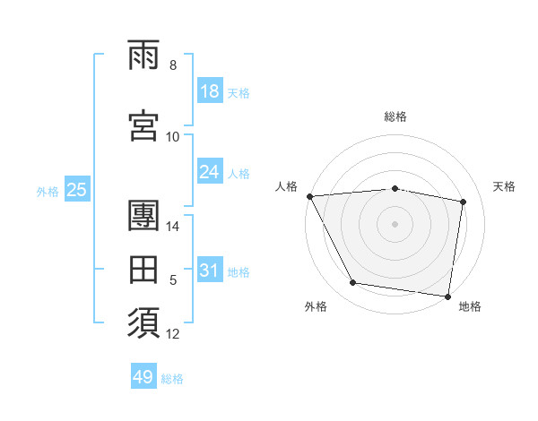 雨宮 團田須さんを姓名の画数から五運を鑑定