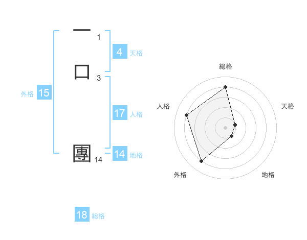 一口 團さんの総格は18画の4点!