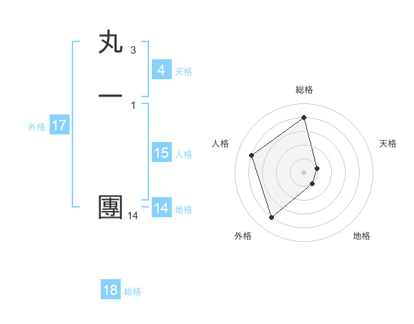 丸一 團さんの総格は18画の4点!