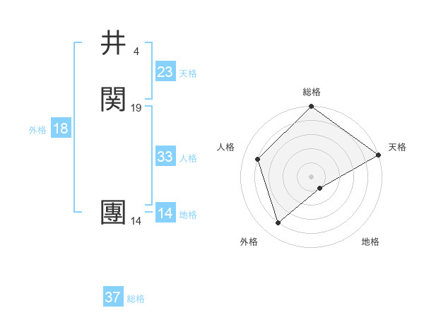 井関 團さんの総格は37画の5点!
