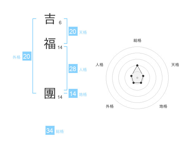 吉福 團さんの総格は34画の2点!