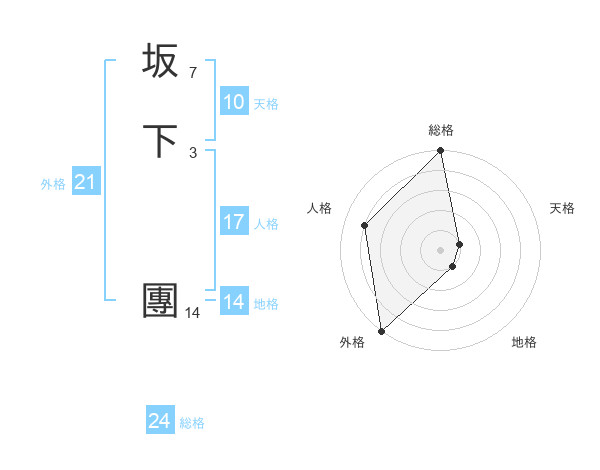 坂下 團さんの総格は24画の5点!
