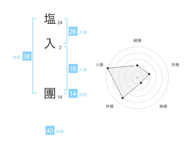 塩入 團さんの外格は38画の4点!