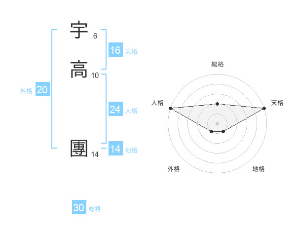 宇高 團さんの総格は30画の2点!