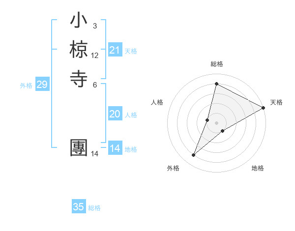 小椋寺 團さんの総格は35画の4点!