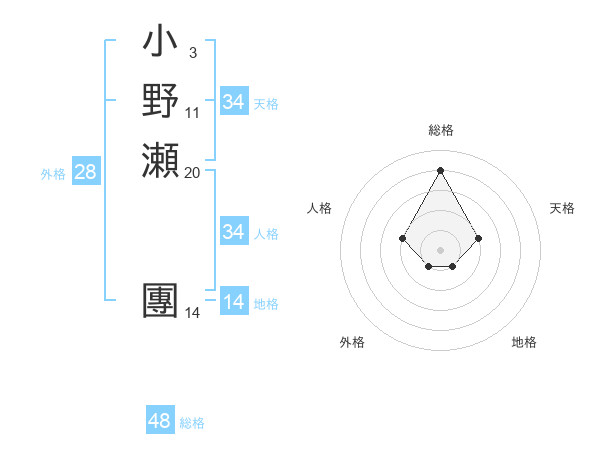 小野瀬 團さんの総格は48画の4点!