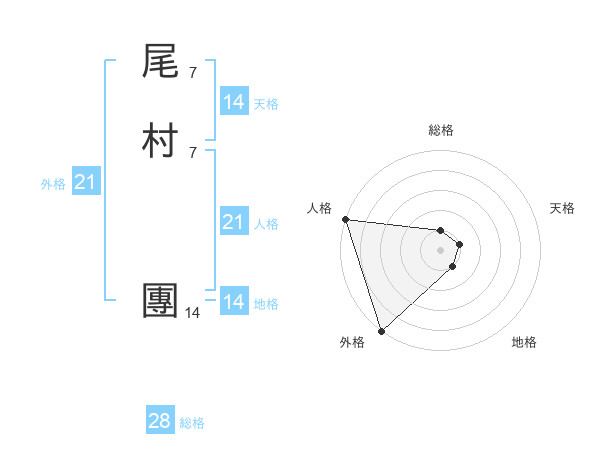 尾村 團さんの外格は21画の5点!
