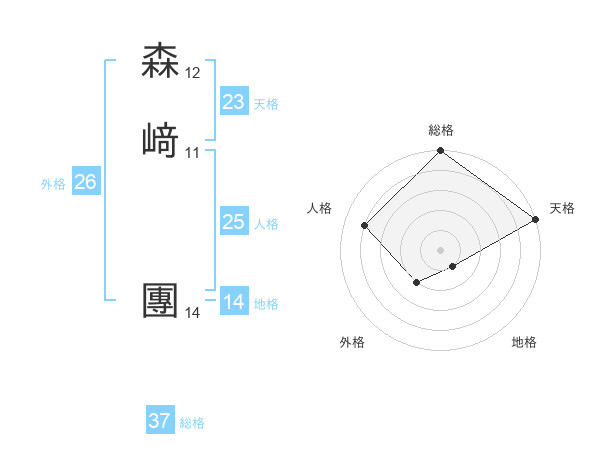 森﨑 團さんの総格は37画の5点!