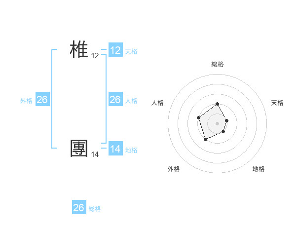 椎 團さんの総格は26画の2点!