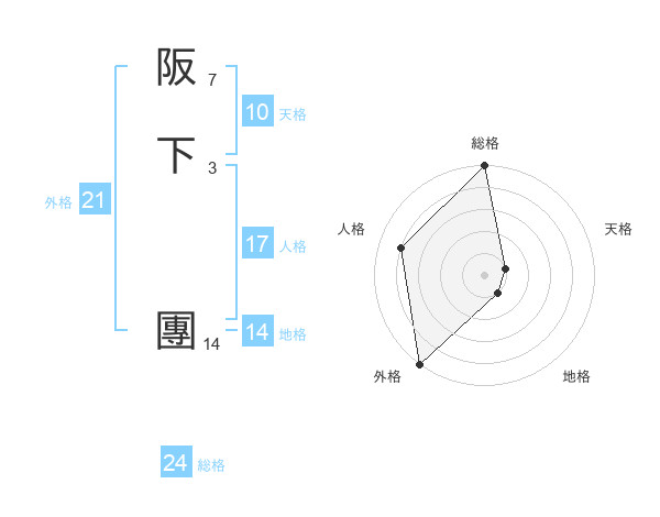 阪下 團さんの外格は21画の5点!