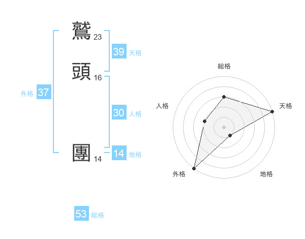 鷲頭 團さんの総格は53画の3点!