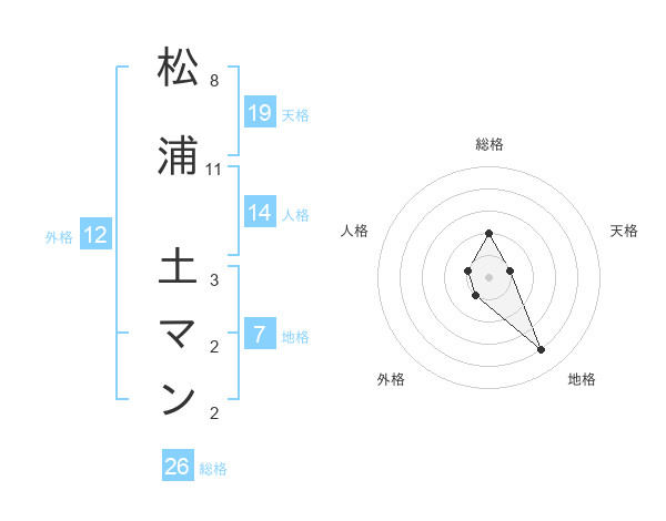 松浦 土マンさんを姓名の画数から五運を鑑定
