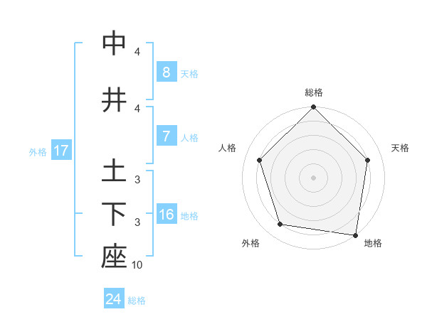 中井 土下座さんの総格は24画の5点!